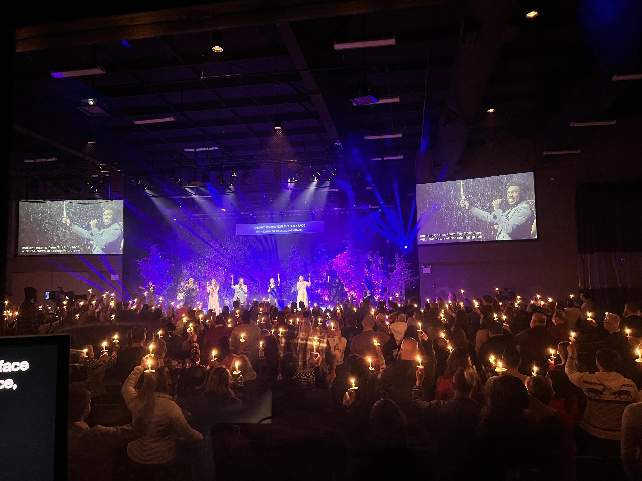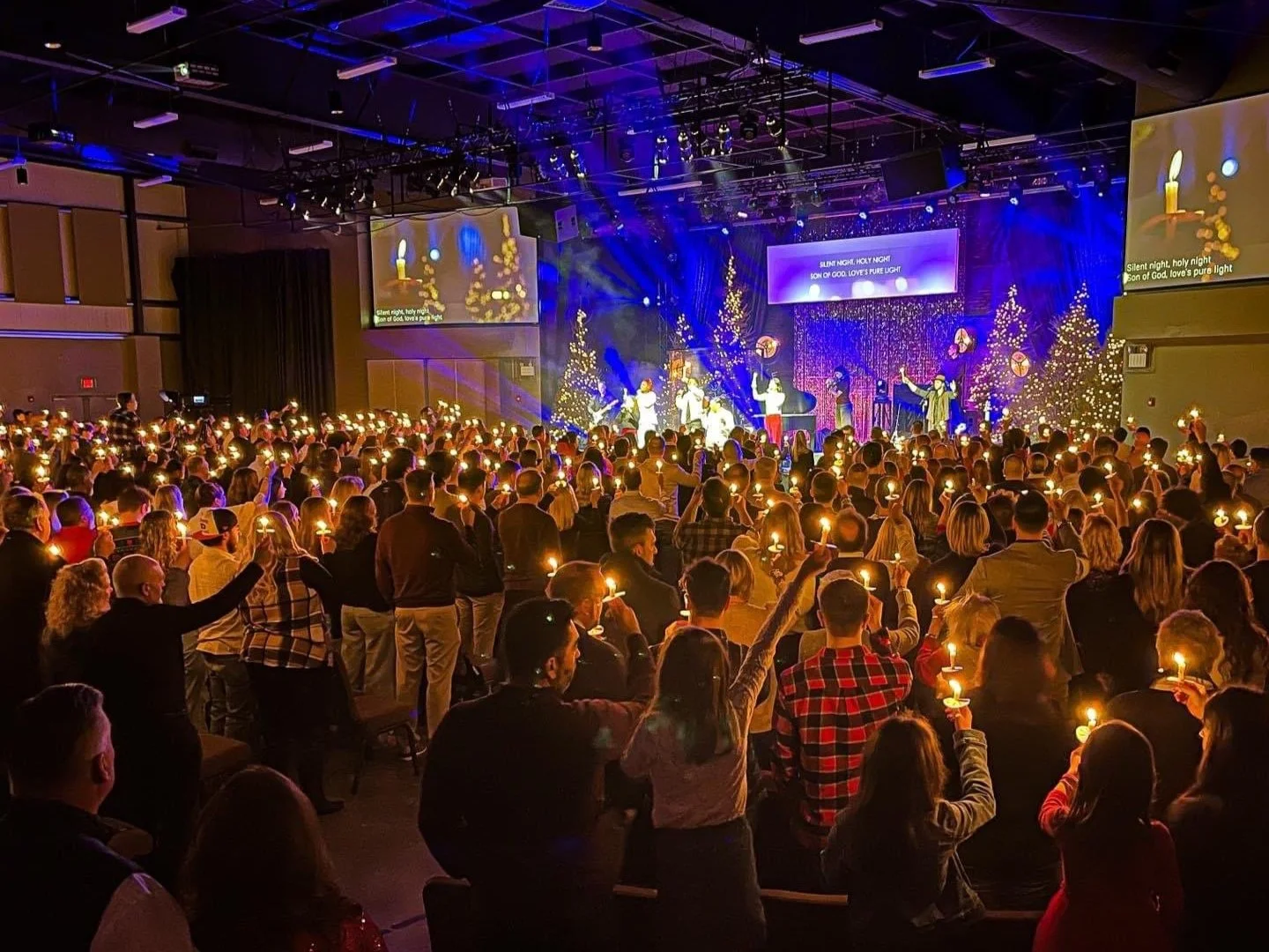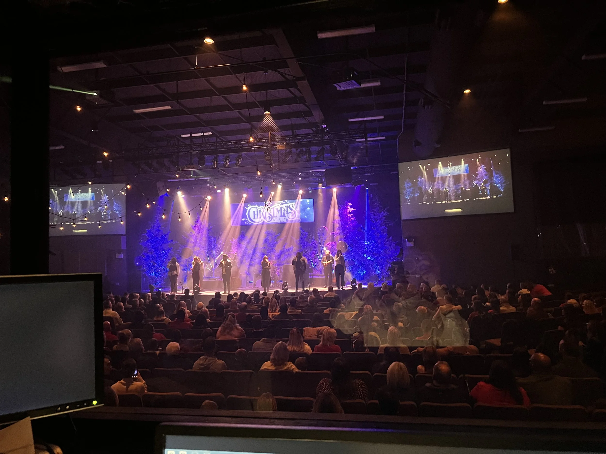 I designed all of the lighting this year along side the Technical Producer at CCV, we had a few rentals that I patched in and set up on stage to add effects. We also lit the Christmas trees as usual and threw on some extra lights we have.