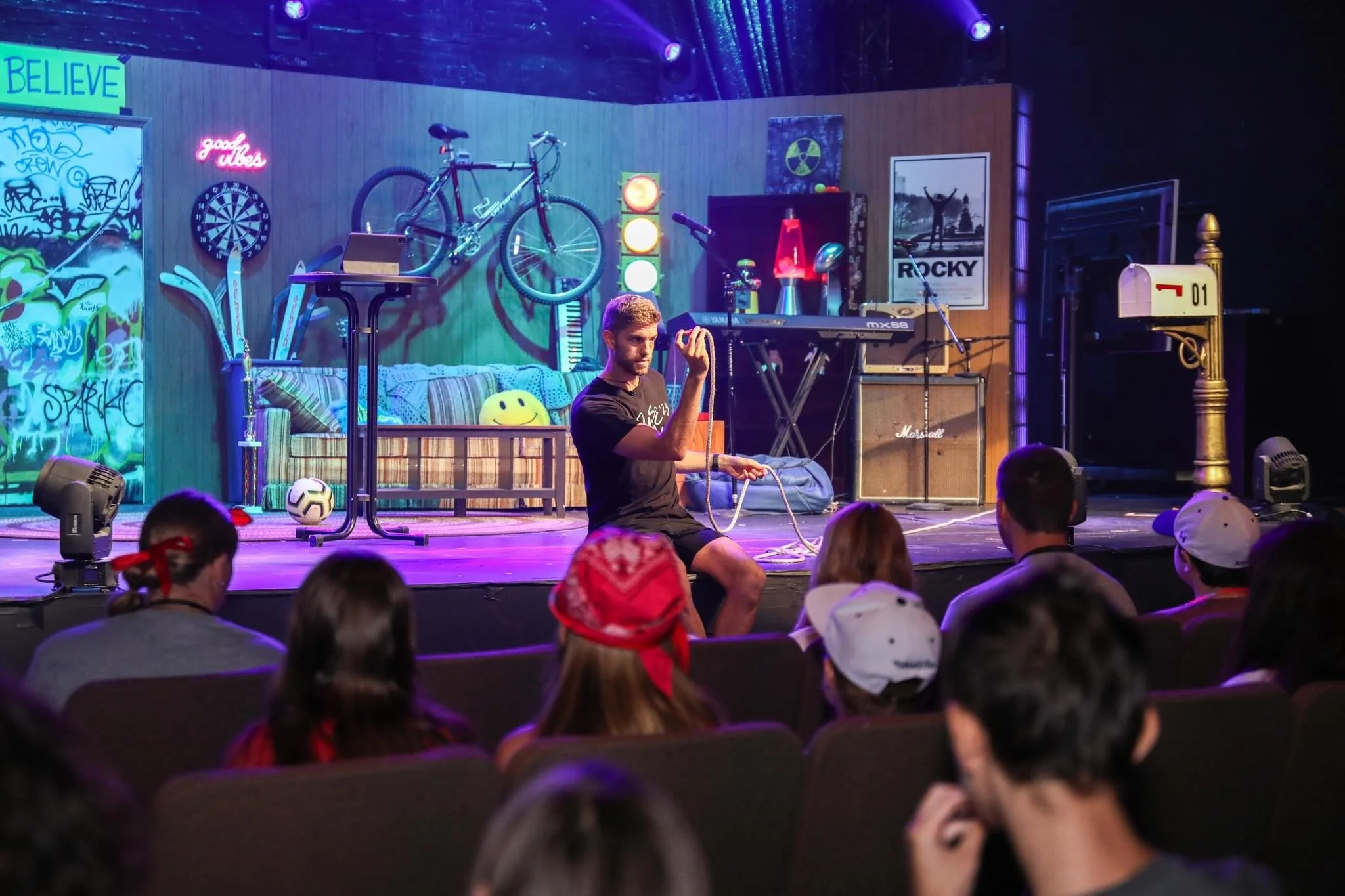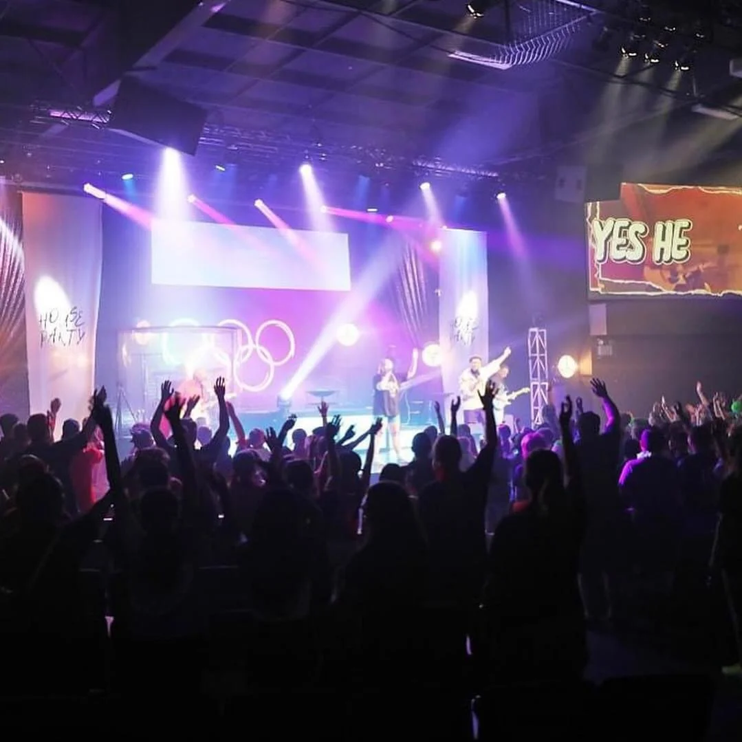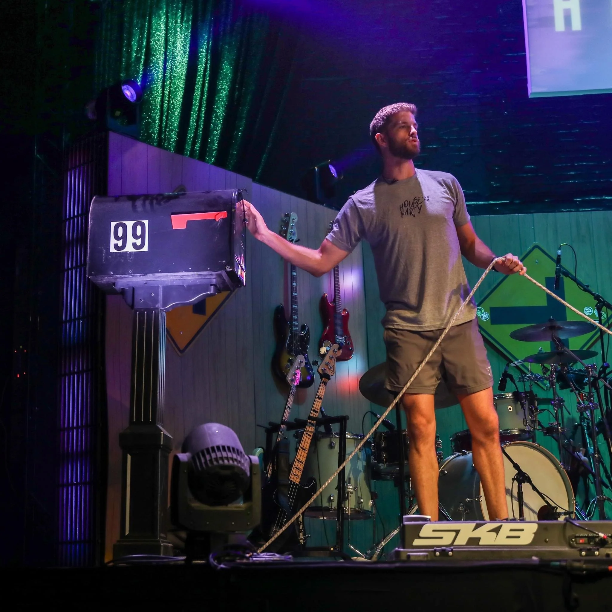 Best part of my summer! The theme for the first year of our revamped middle school camp was “Family,” we had an awesome garage-band style set and it was super fun to help put together as it was so inexpensive! I designed and setup all of the lighting (Including Elation Dartz 360 rentals). I also took care of outdoor sound, and the other areas of tech for each of the “houses” by adding lights, and updating some unused areas!