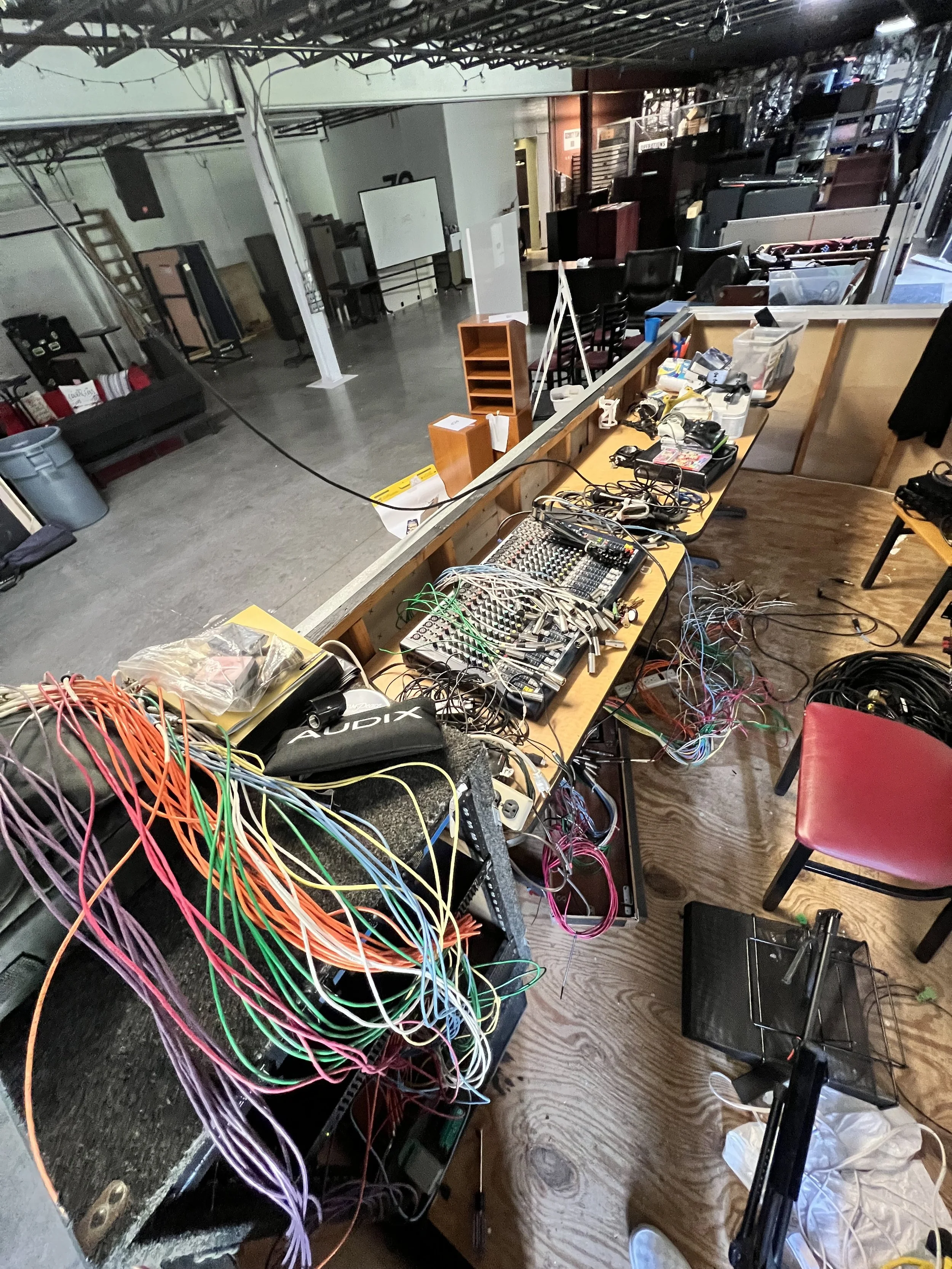 Middle School Camp! This year we had a lot of rental lighting and trussing which we flew up on chain hoists, I learned a lot about how it all works. I helped with the setup and design of the lighting, as well as the outdoor audio system.