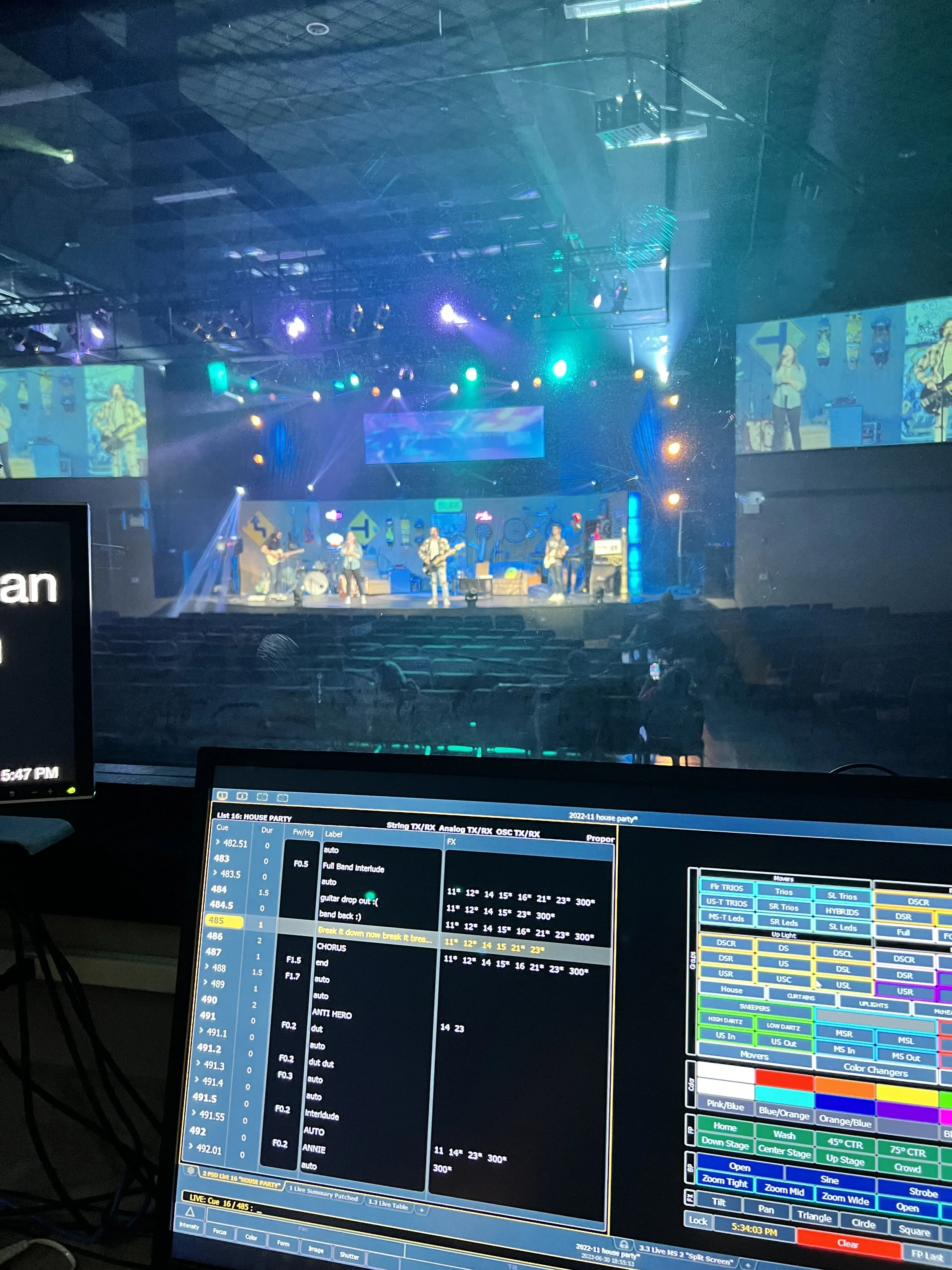 Unfortunately I have no media to show from this year’s middle school event, however We had a decent amount of rental equipment and even flew trussing out above the crowd which was so fun! I setup and ran outdoor audio and also learned a lot about the lighting process from one of the volunteers!