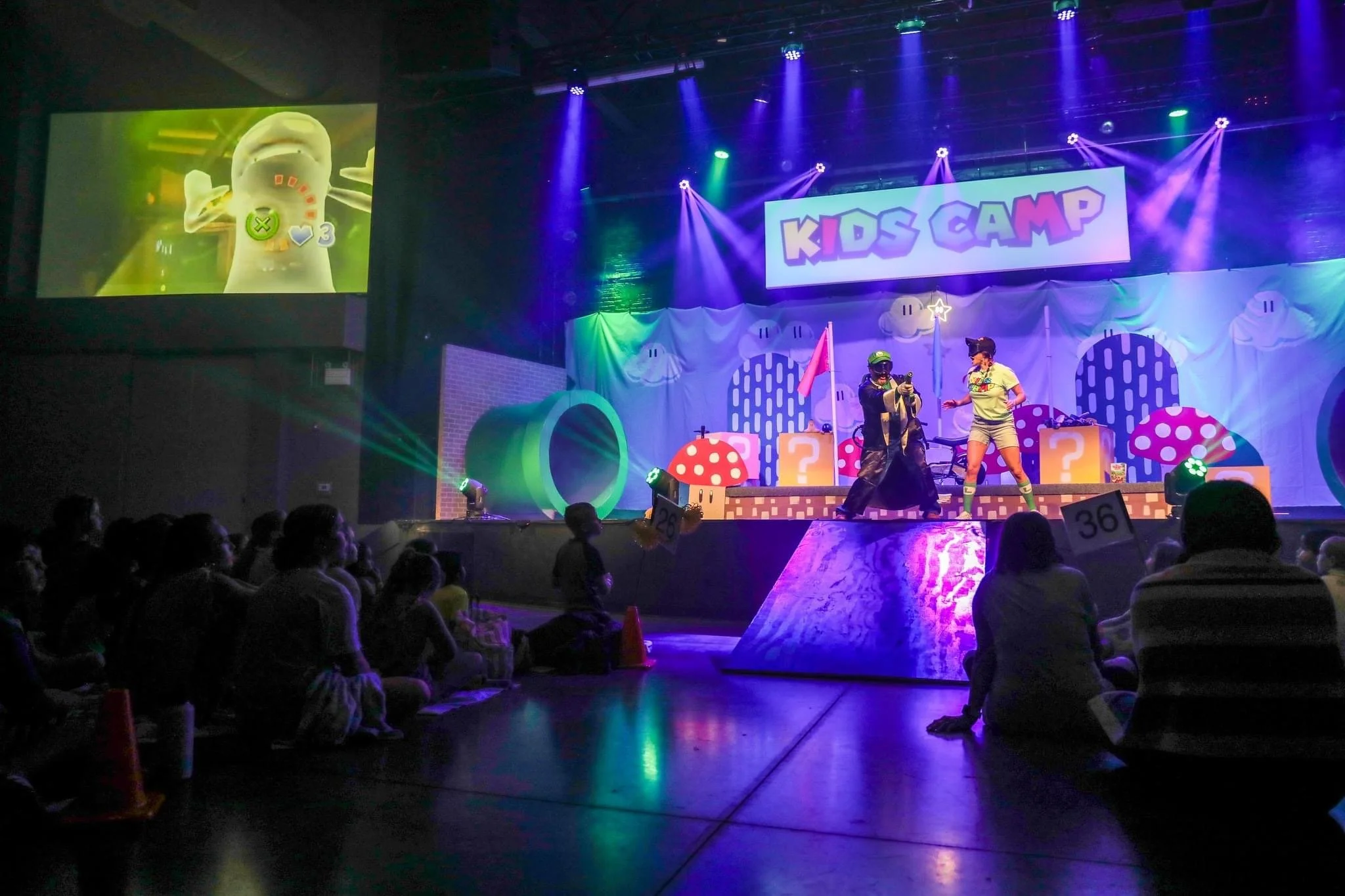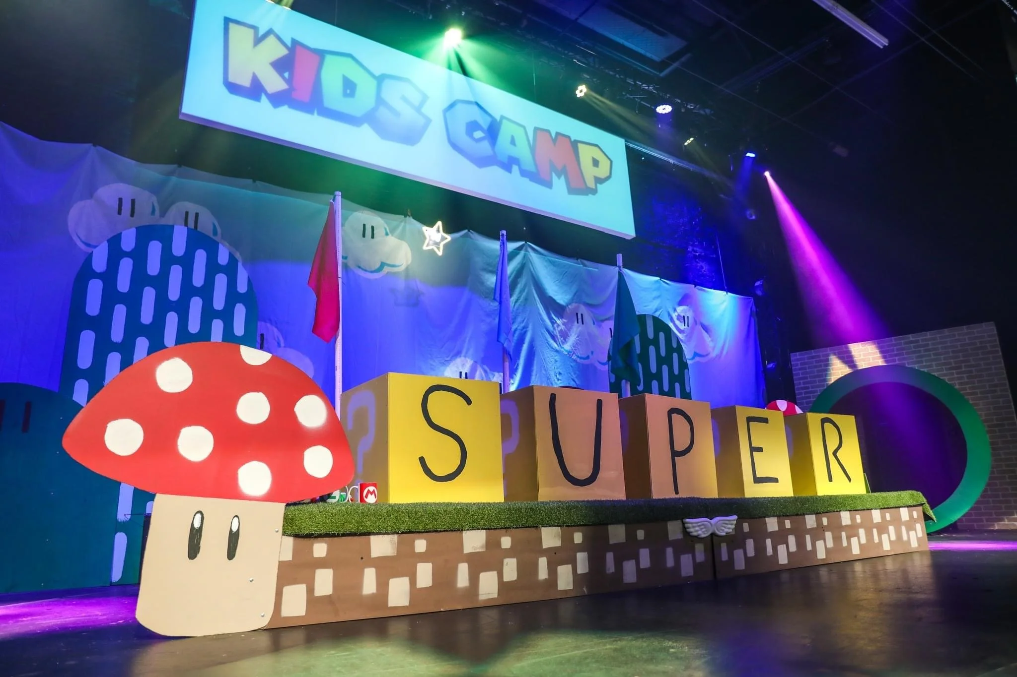 This year’s theme was Mario Brothers! I programmed all lighting segments, I especially had fun figuring out how to light the green pipes to add effect any time a character would enter. I also ran the outdoor audio system.