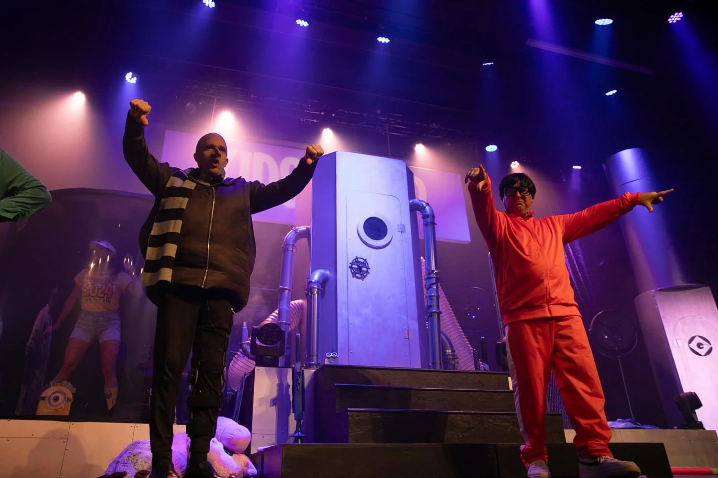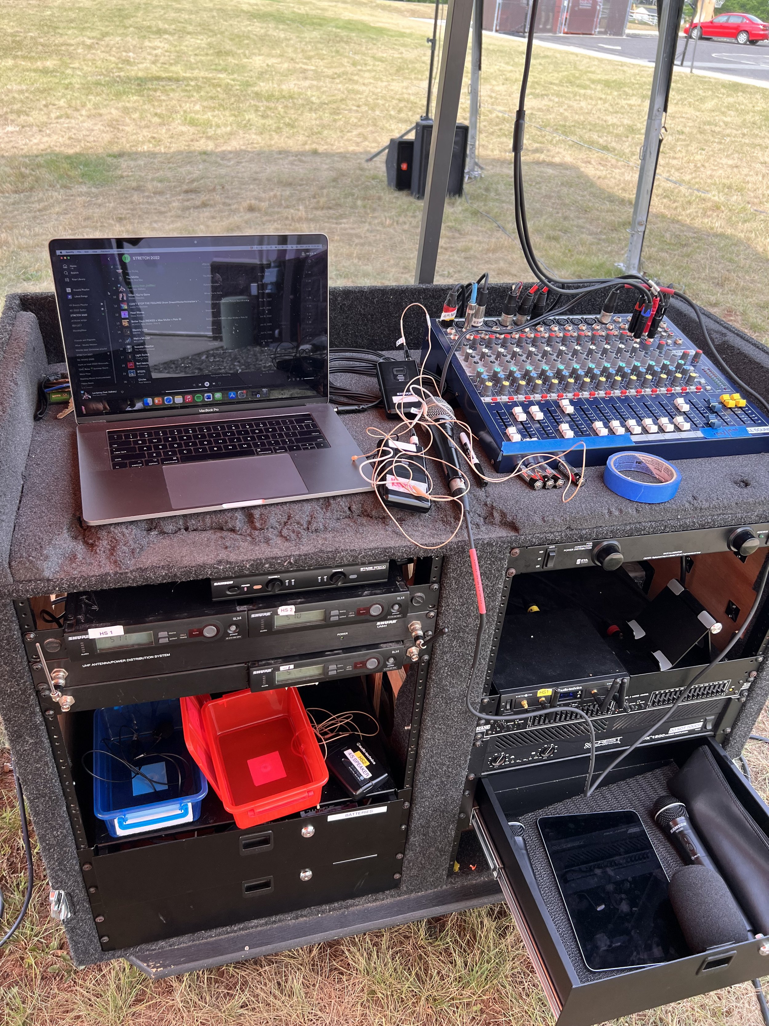 This year’s theme was Despicable ME! I programmed all lighting segments, I even added some bar lights and a hazer within the “Change-O-Chamber” on the middle of the stage for a fun effect! I also ran the outdoor audio system.