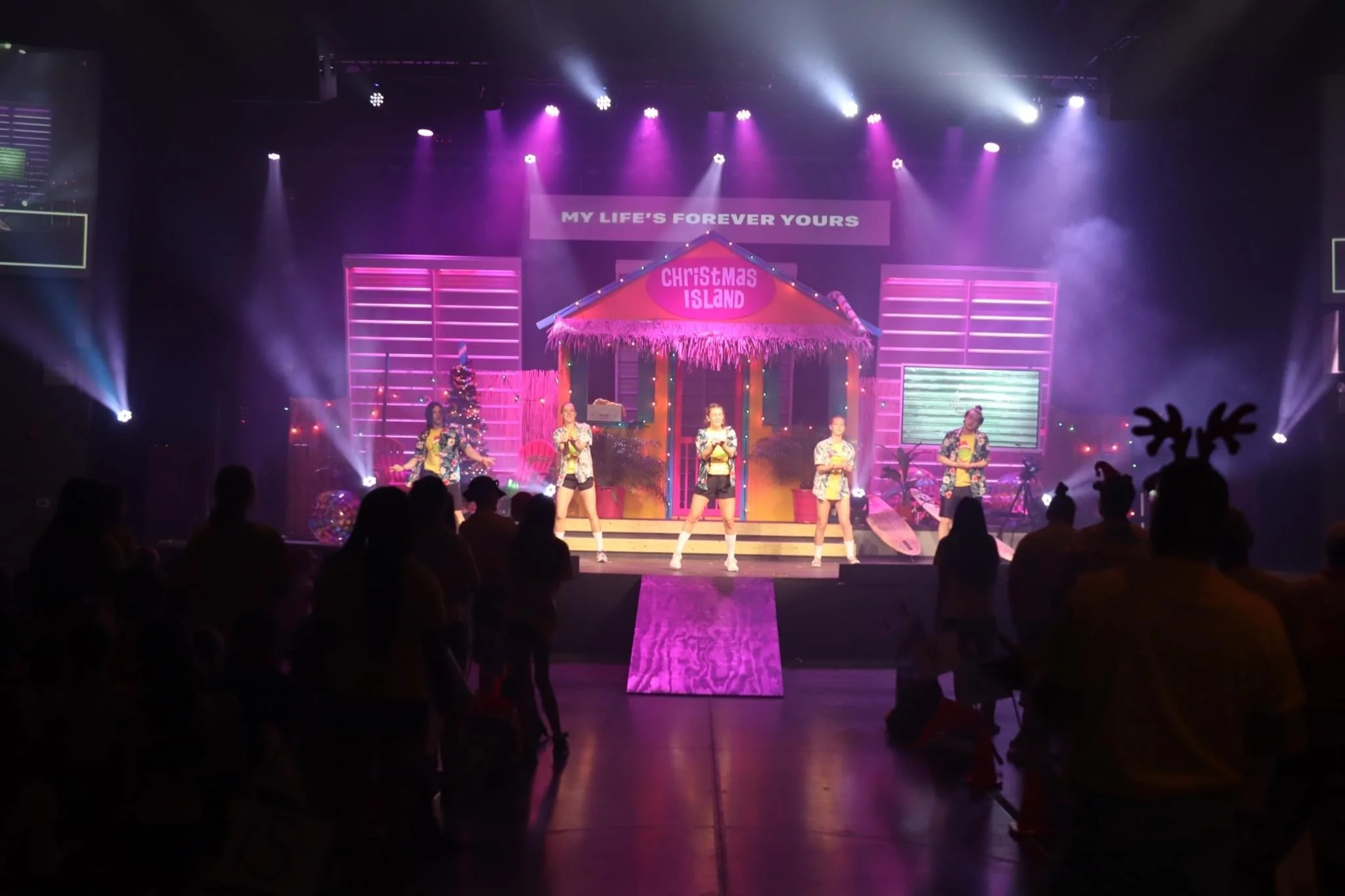 This year’s theme was Christmas Island! I programmed all lighting segments, and had a lot of fun with some of our festive string-lighting. I also setup the outdoor audio system, and the stage system and ran that every day.